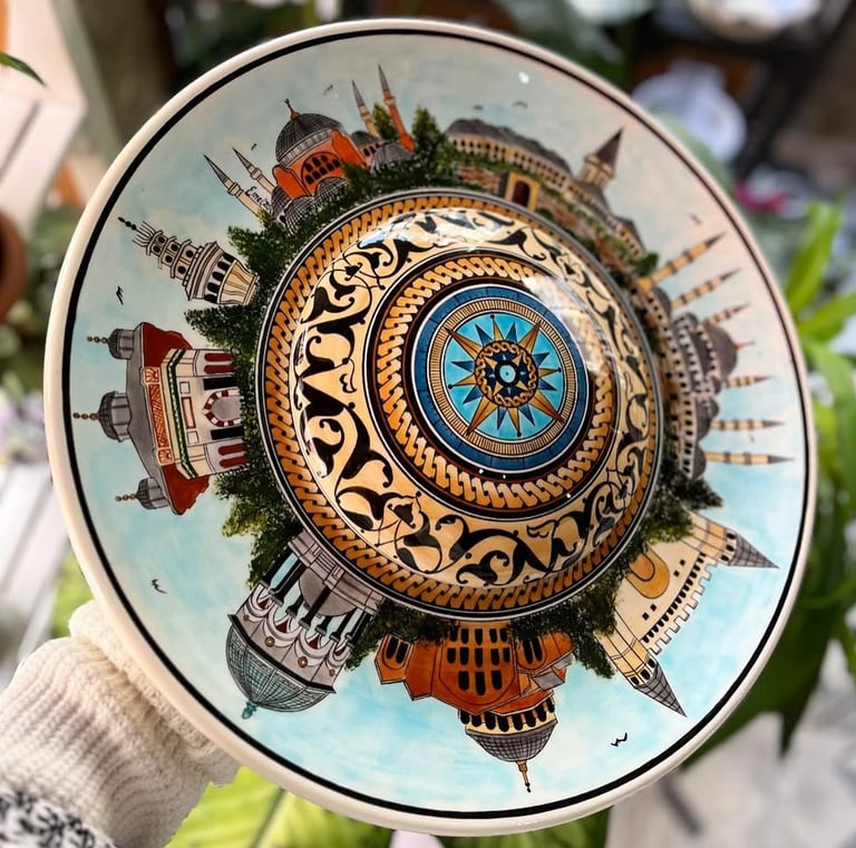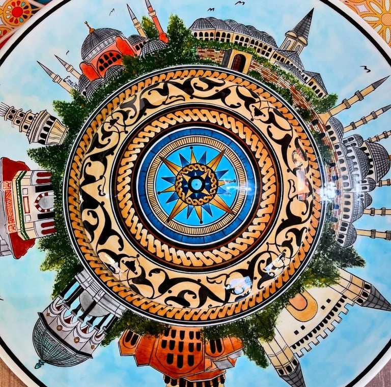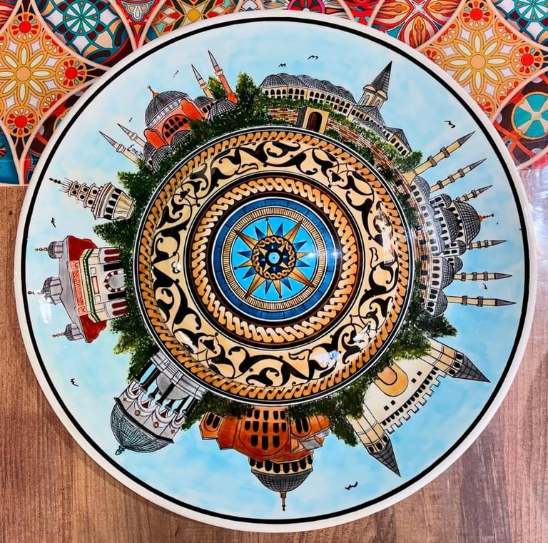 İstanbul'un Fatih ilçesi, tarihi ve kültürel zenginlikleriyle doludur. Bu bölgedeki eserlerden biri olan çini tabaklar, Osmanlı döneminin zarif sanat anlayışını yansıtır. Geleneksel motiflerle süslü bu tabaklar, ince işçilikleri ve canlı renkleriyle dikkat çeker. Fatih'teki eserlerin en belirgin özelliklerinden biri, yerel sanatçıların el emeğiyle ortaya çıkmasıdır.